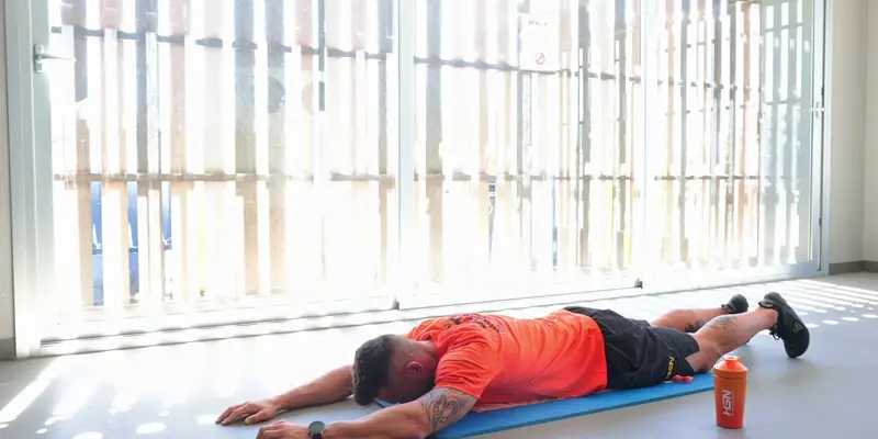 💪 Esecuzione: sdraiato a pancia in su, solleva leggermente gambe e spalle da terra mantenendo la zona lombare aderente al suolo e il core contratto. Tieni le braccia distese sopra la testa o lungo i fianchi.