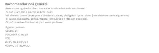 Reccomandazioni e pasti generali