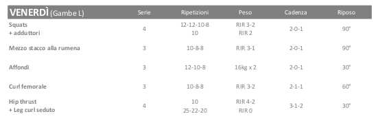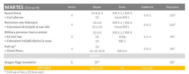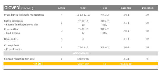 Anche se stavo pensando di seguire un piano di allenamento (keto) ibrido di 3 giorni in queste prime settimane, ho optato per aumentare il volume dell’allenamento, passando da una routine di media frequenza Torso-Gambe che potete vedere di seguito.