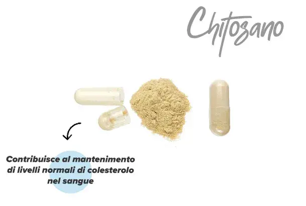 - Il chitosano contribuisce a mantenere livelli normali di colesterolo nel sangue. L'effetto benefico si ottiene con un'assunzione giornaliera di 3g di chitosano.