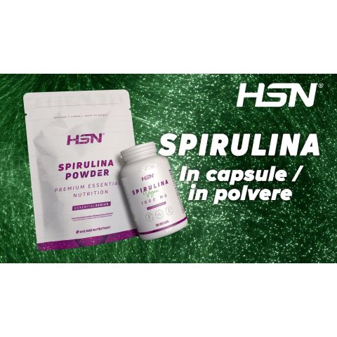 1000mg di Spirulina platensis per capsula. Con Ferro e Vitamina B12 - Integratore perfetto per diete vegane. 100% senza Organismi Geneticamente Modificati. Alga azzurro-verde di alta qualità e purezza. Formula con certificazione HSN.