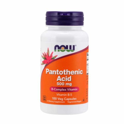 Acido Pantotenico (Vitamina B5) 500mg di Now Foods è un integratore alimentare a base di acido pantotenico con calcio in capsule vegetali.