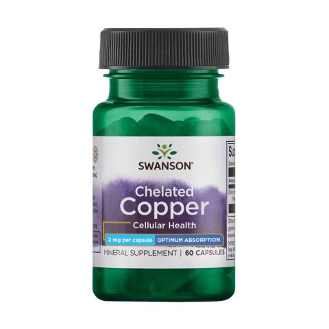 Rame chelato ad assorbimento ottimale. Comode capsule vegetali da 2 mg ciascuna. Qualità Swanson.