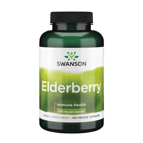 Bacche di Sambuco 575 mg di Swanson è un integratore alimentare a base di frutta ed estratto di sambuco (Sambucus nigra) con concentrazione 4:1 dell'estratto in capsule vegetali.