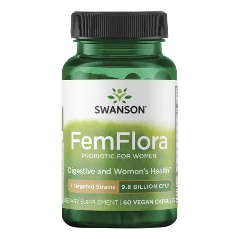 Femflora Probiotic Per Donne 9,8 Billion CFU di Swanson è un integratore alimentare a base di 7 ceppi di Lattobacilli in capsule.