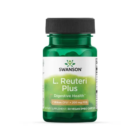 Lactobacillus Reuteri Plus 7 Miliardi UFC + 200mg FOS di Swanson è un integratore in cápsula vegetal a base di FOS e 3 fermenti batterici.