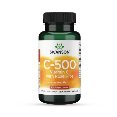 Vitamina C + Rosa Canina 500mg di Swanson è un integratore alimentare in capsule a base di vitamina C in forma di acido ascorbico ed estratto di Rosa Canina.