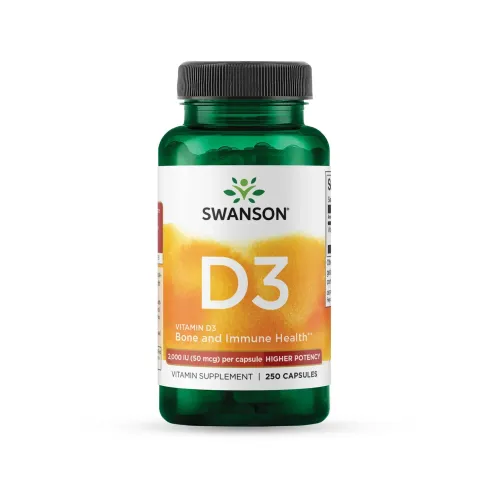 Vitamina D3 2000 UI di Swanson è un integratore in capsule a base di colecalciferolo (vitamina D3).