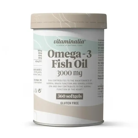 Omega 3 3000mg di Vitaminalia è un integratore alimentare in softgel a base di olio di pesce standardizzato in acidi grassi Omega 3, 18% EPA (Acido Eicosapentaenoico) e DHA (Acido Docosaesaenoico).