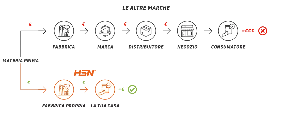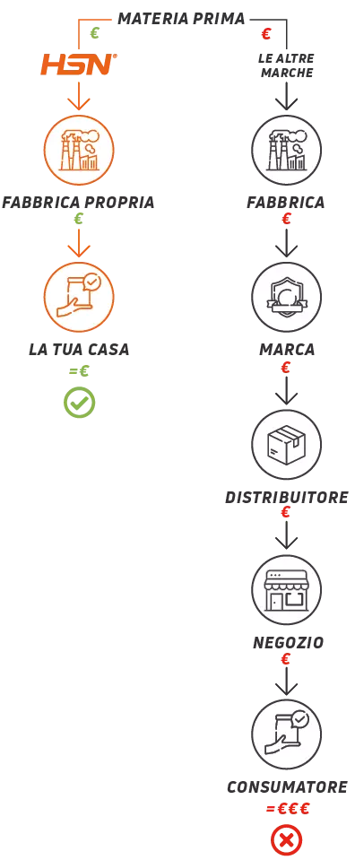 I prodotti HSN, una volta sviluppati e fabbricati nei nostri stabilimenti, hanno un solo sentiero, una sola direzione: il nostro cliente.